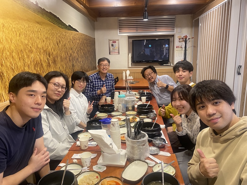 イベント 韓国漢陽大学訪問 JSPS二国間交流事業の一環で、共同研究先の漢陽大学Jaegeun Noh教授の研究室を訪問しました。美味しいものもたくさん頂きました! « Prev Next » イベント一覧 2025.10.23