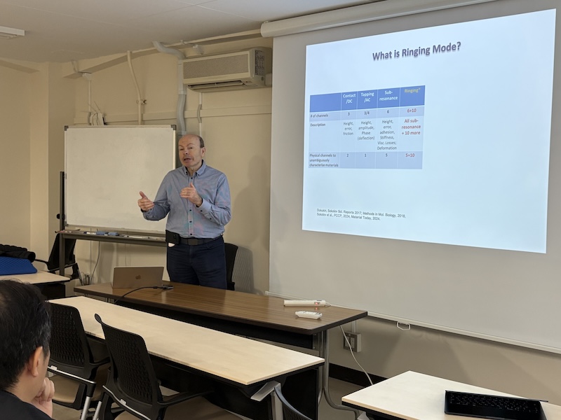 米国Tufs UniversityのProf. Dr. Igor Sokolovが、来日の機会に我々の研究室を訪問してくださいました。「Mechano-spectroscopy of Soft Materials with Atomic Force Microscopy (AFM-MS) and Machine Learning」講演会行なっていただきました。